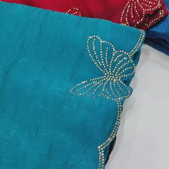 Drape yourself in elegance with the Bitiyaa Blue Butterfly Crystal Tissue Saree, a statement piece that blends timeless charm with modern detailing. Crafted from luxurious tissue fabric, this saree is lightweight, breathable, and perfect for both day and evening occasions.