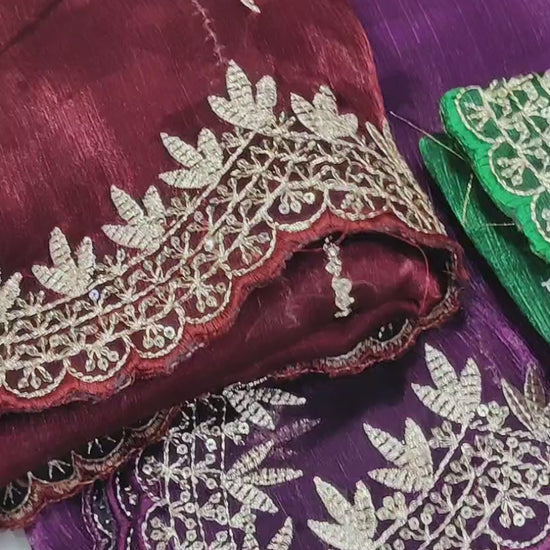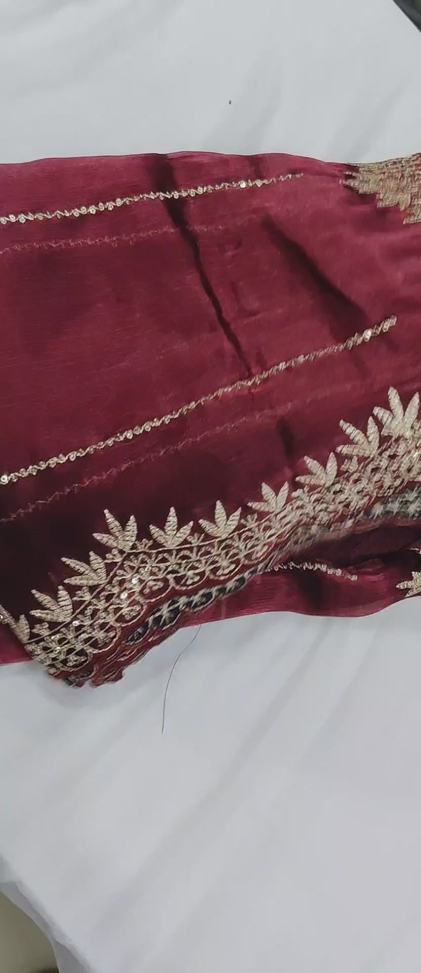 Elevate your style with the Bitiyaa Golden Embroidered Saree, designed to blend elegance and tradition. The rich maroon base is highlighted with a stunning golden floral leaf embroidered border, adding a regal charm to your look. Lightweight and easy to drape, this saree is perfect for weddings, festive celebrations, parties, and special occasions.